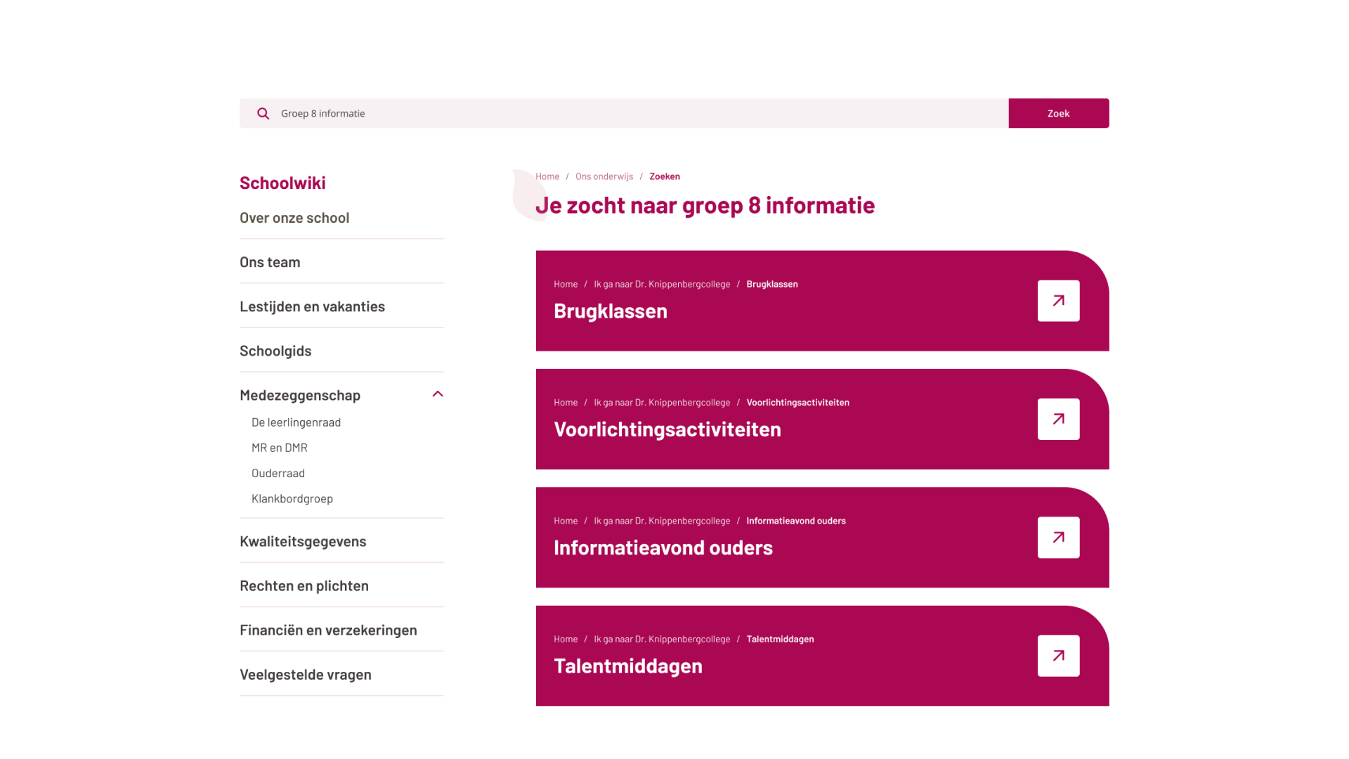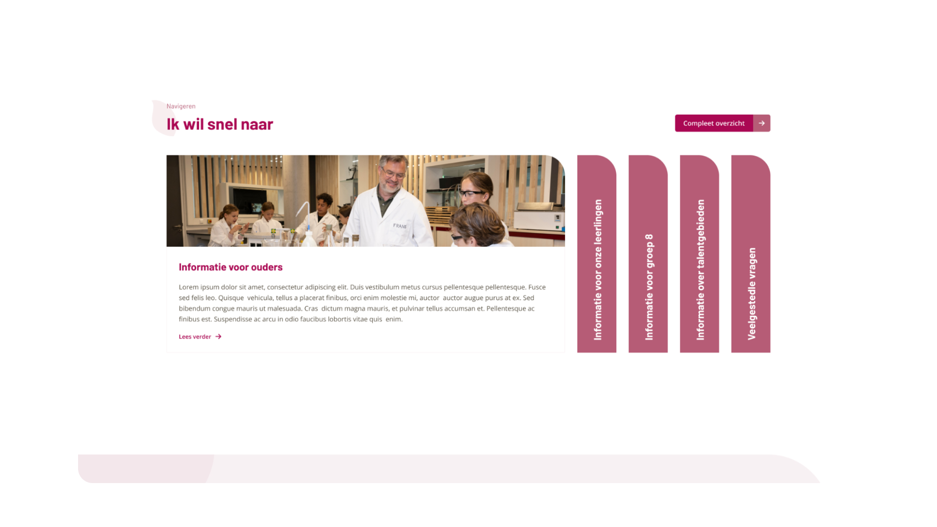 De site is opgebouwd rond ‘voor wie ben je hier?’: “Ik ga naar…”, “Ik zit op…”, onderwijsaanbod en talentgebieden. Zo vinden ouders en leerlingen sneller hun weg.